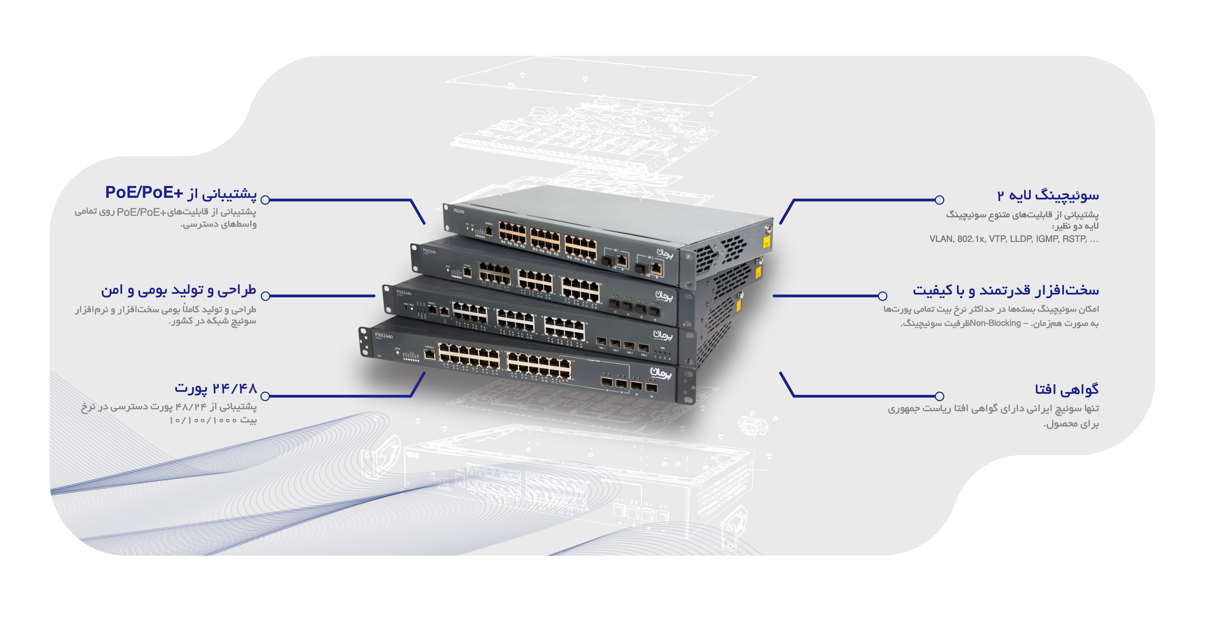 یک شبکه ارتباطی مطمئن، علاوهبر سختافزار و نرمافزار با کیفیت، به خدمات پشتیبانی در سطح سازنده نیز نیازمند است. ما در پرمان متعهدیم که برای پشتیبانی شبکه همواره در دسترس باشیم.