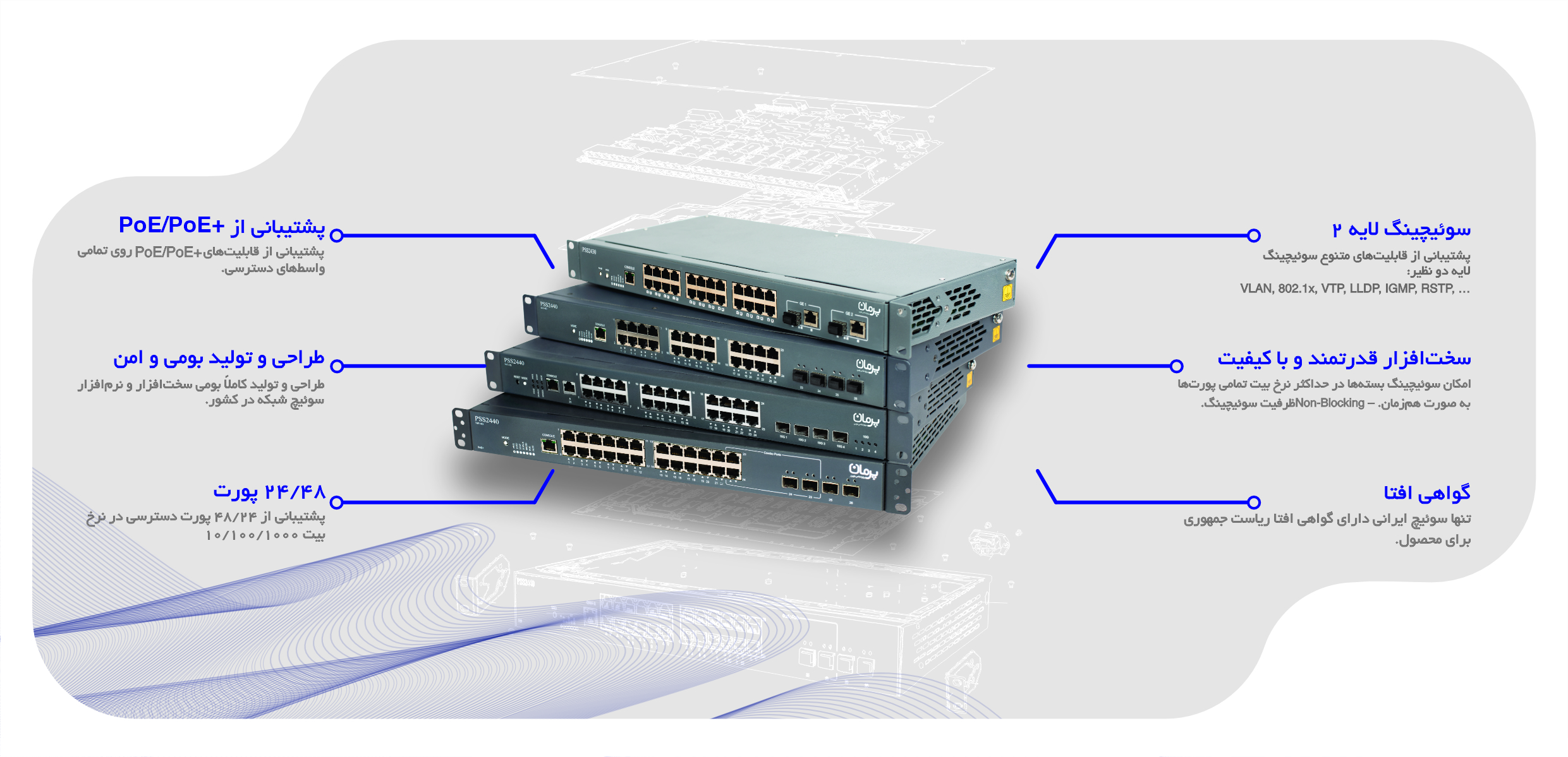 امنیت شبکه شما برای ما مهم است؛ برای اطمینان از این موضوع، نرمافزارهای نهاده و نرمافزارهای رابط کاربر تمامی محصولات پرمان در تیم R&D شرکت توسعه یافتهاند.